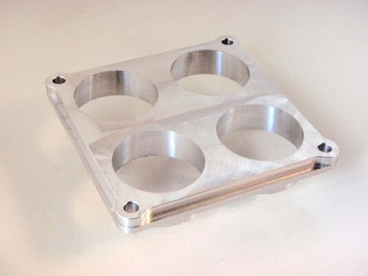 Carb Spacer 7000 Series, 2.300" Professional - This 1" thick, billet aluminum, 4 hole spacer has a 7 degree taper through the Professional style stepped holes. It is for 2.300" butterflies with 2.910" center to center spacing.
